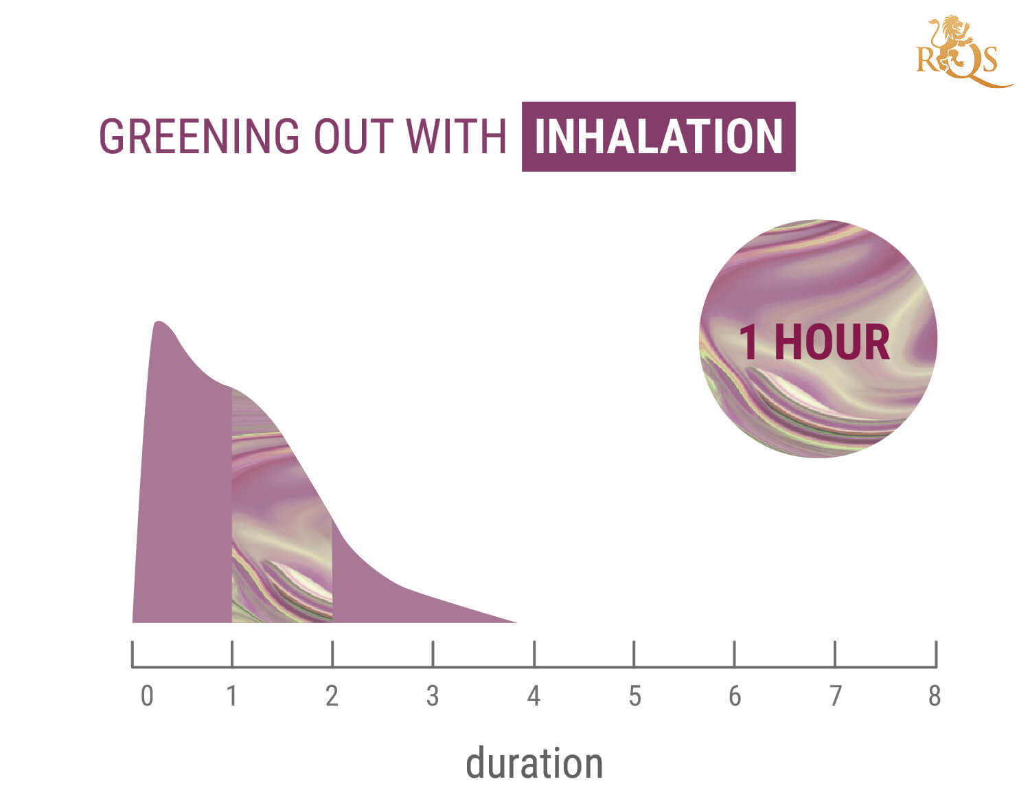 Effekterna av rökt/vejpad cannabis når en topp på cirka 30 minuter och varar vanligtvis 1–2 timmar. Högst kommer du att känna effekterna av stekningen i ungefär en timme med full intensitet innan det börjar avta.