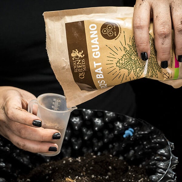 Royal Queen Seeds Fladdermus-Guano serverar stora mängder enzymer, NPK och mikronäringsämnen som är viktiga för cannabisplantans tillväxt och kraftiga avkastningar. Som en helt naturlig och organisk substans förser fladdermusguano först mikroberna i jorden.